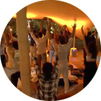 150 personas vibrando en sincronía, inmersas en una atmósfera sagrada y multisensorial.