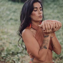 Mujer medicina, puente entre lo ancestral y lo contemporáneo. En sus ceremonias nos invita a honrar la ancestralidad, la fuerza de las semillas y la abundancia de la naturaleza, con la misión de expandir conciencia y sembrar nuevas formas de cooperación.